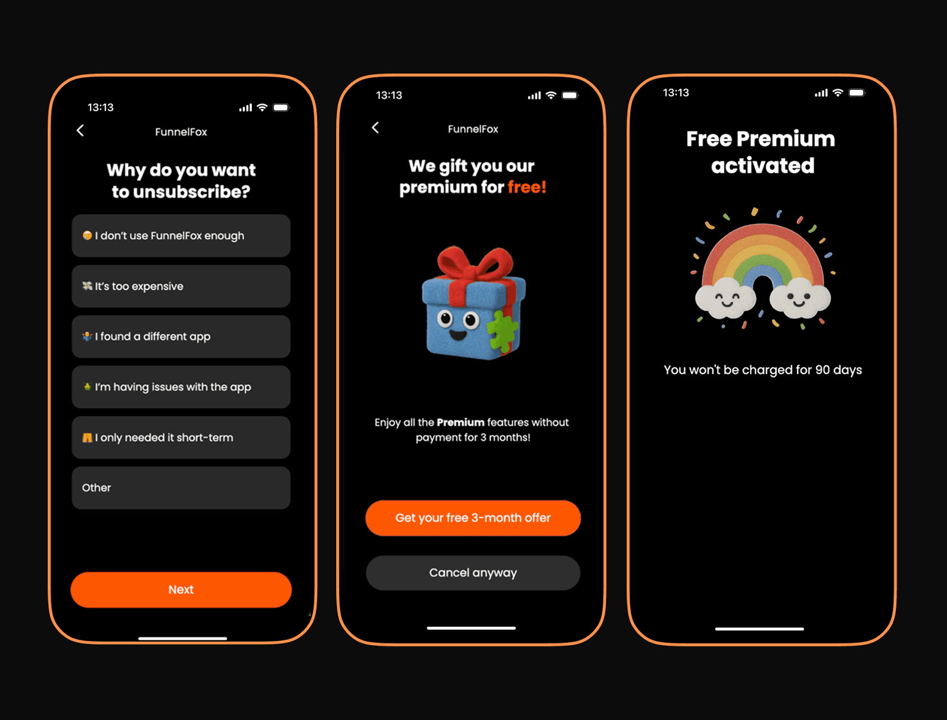 Turn "cancel" into a second chance. Build retention funnels that understand why customers are leaving — and respond with the right offer to keep them.
