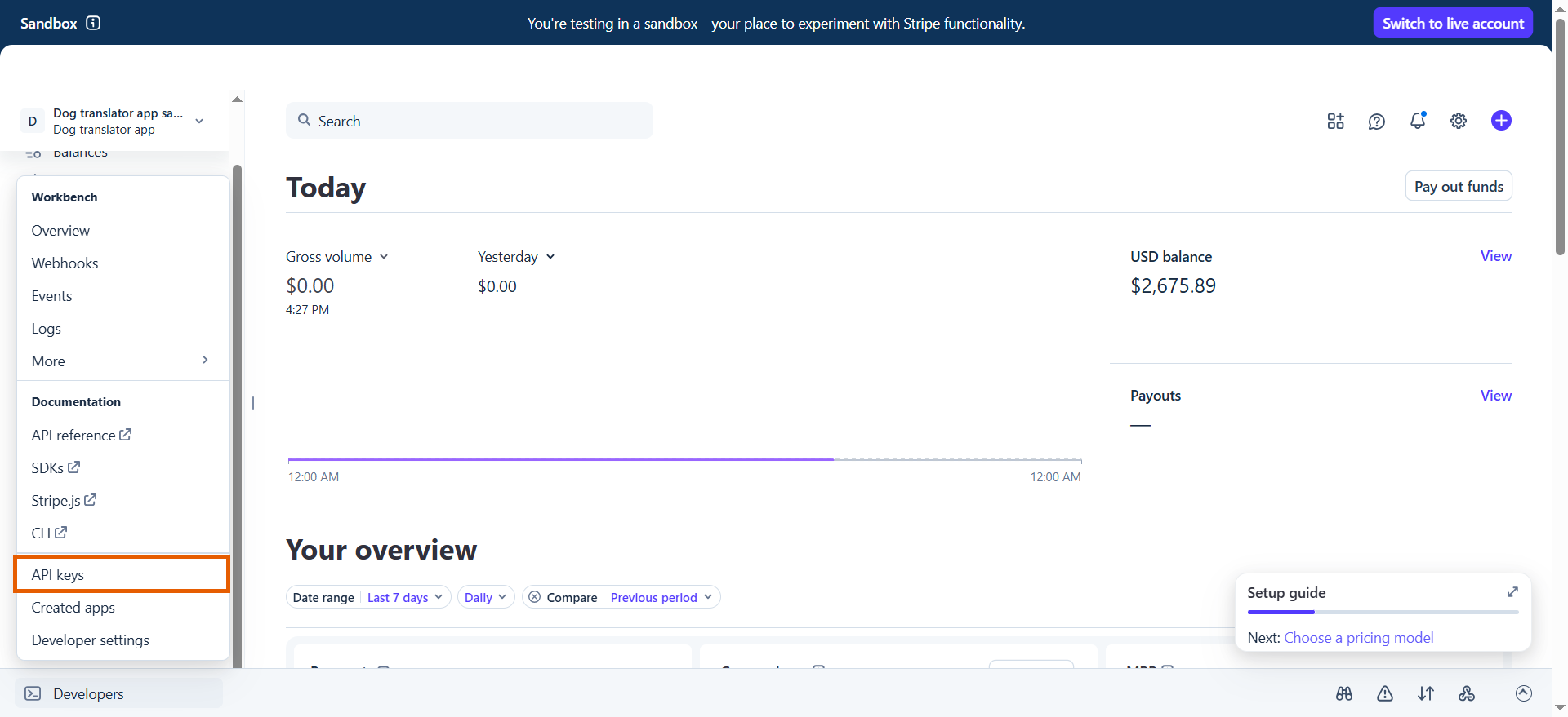 - Go to Developers > API keys at the bottom left.