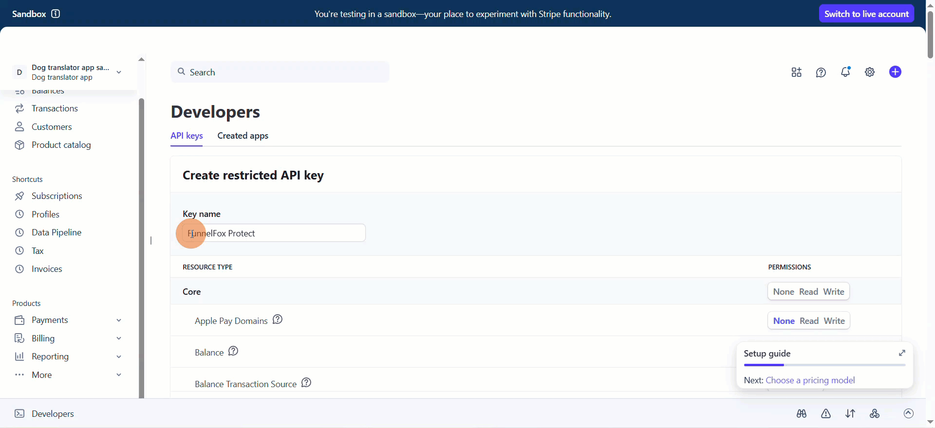 Once the transfer is initiated, complete steps 2 and 3 from the Setup section above to create a restricted Stripe key and set up the FunnelFox Billing webhook if you haven’t already.
