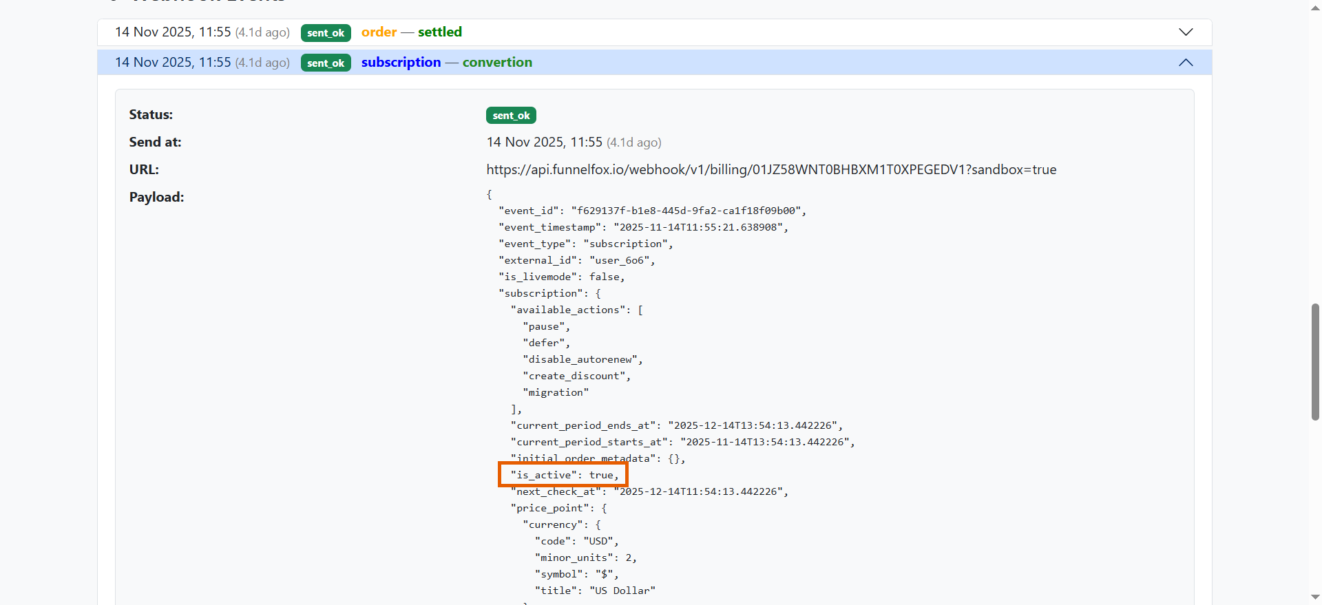 next_check. For example, a subscription with both RECURRING and AUTORENEW_OFF statuses won’t charge again (auto-renewal is disabled), but the current premium access remains active until it expires.Track status changes