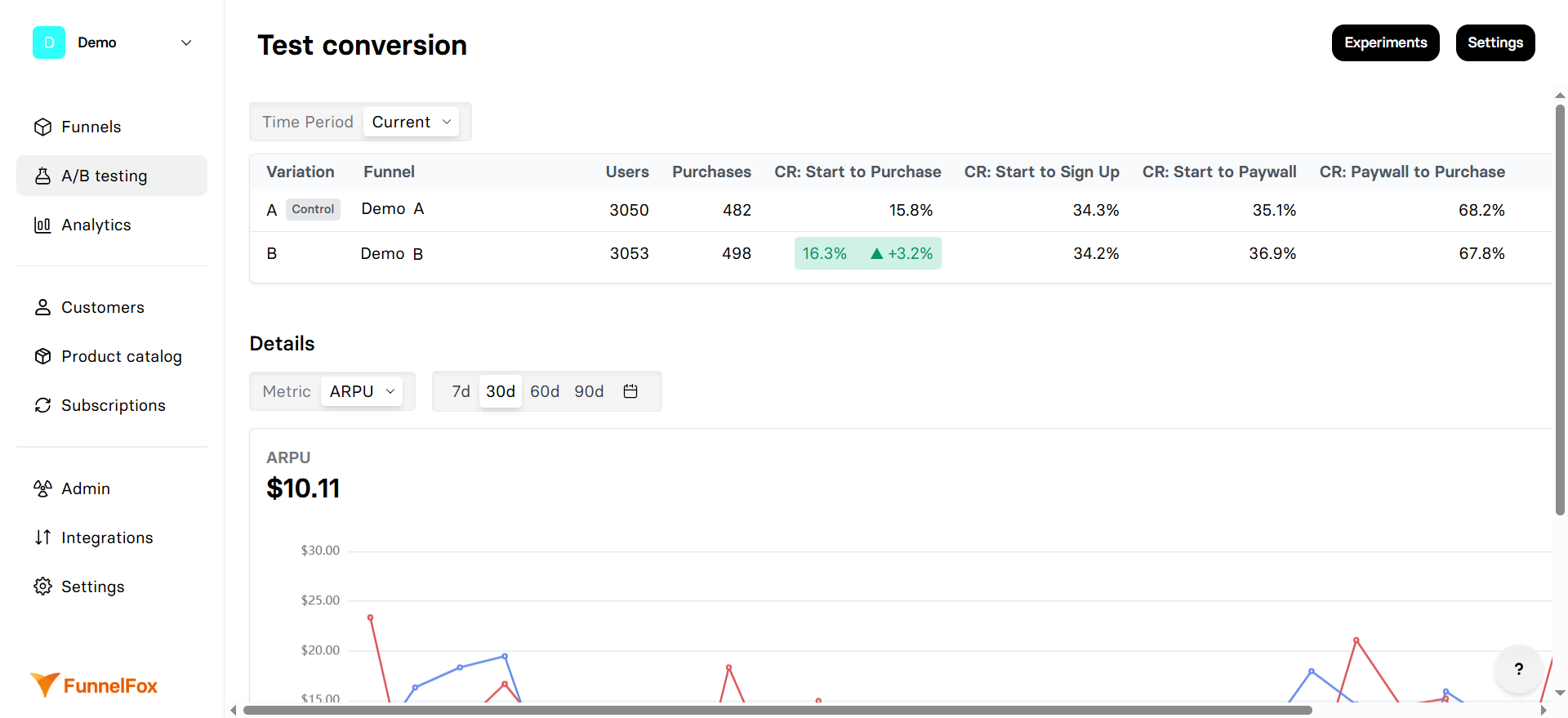 FunnelFox sends experiment data to your analytics platforms:Automatic Tracking