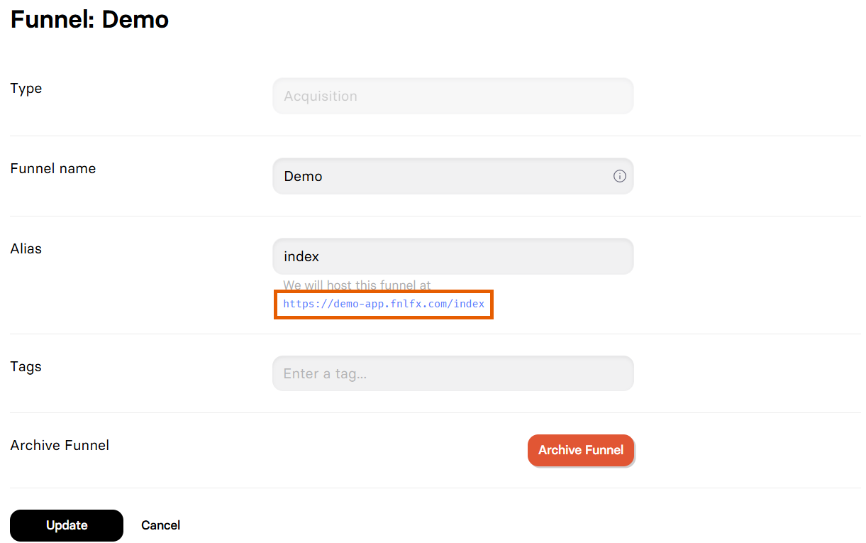 URL | app.funnelfox.com/preview/… | [project].fnlfx.com/… |