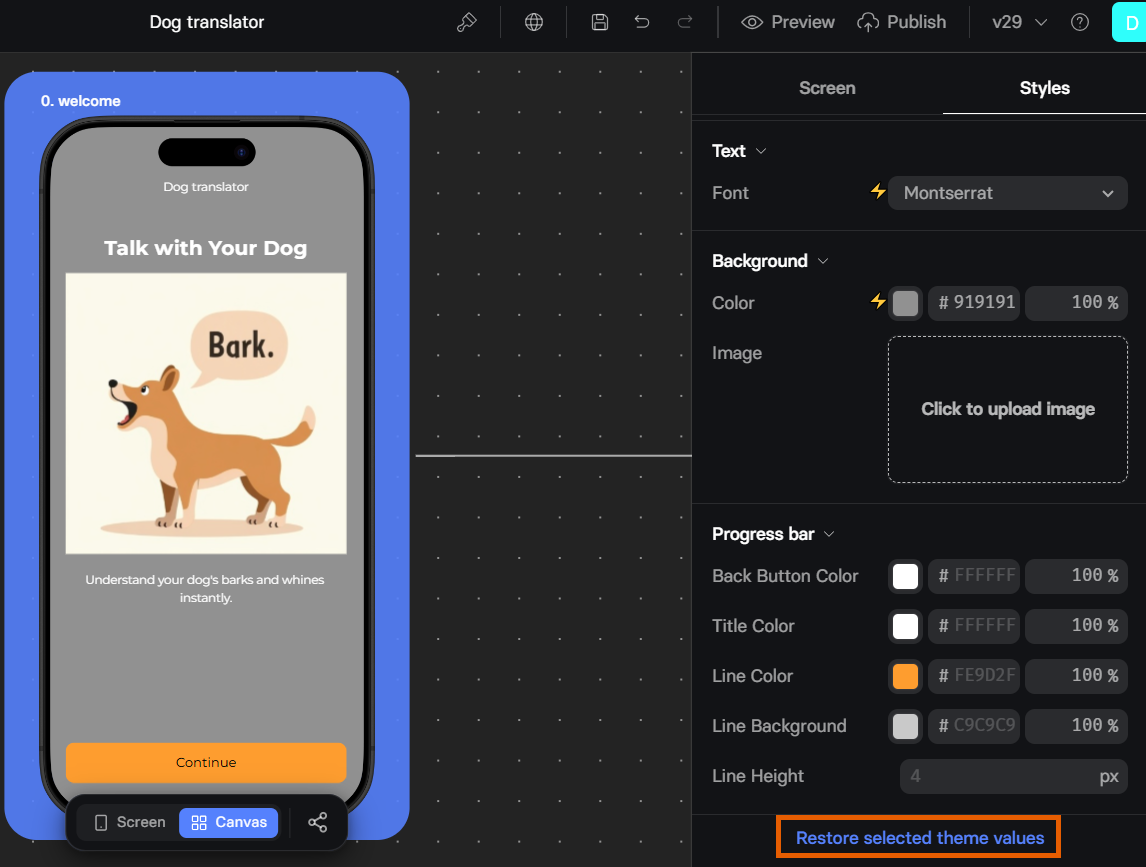 If you edit the theme while applying it, the changes will impact all project funnels with this theme applied.