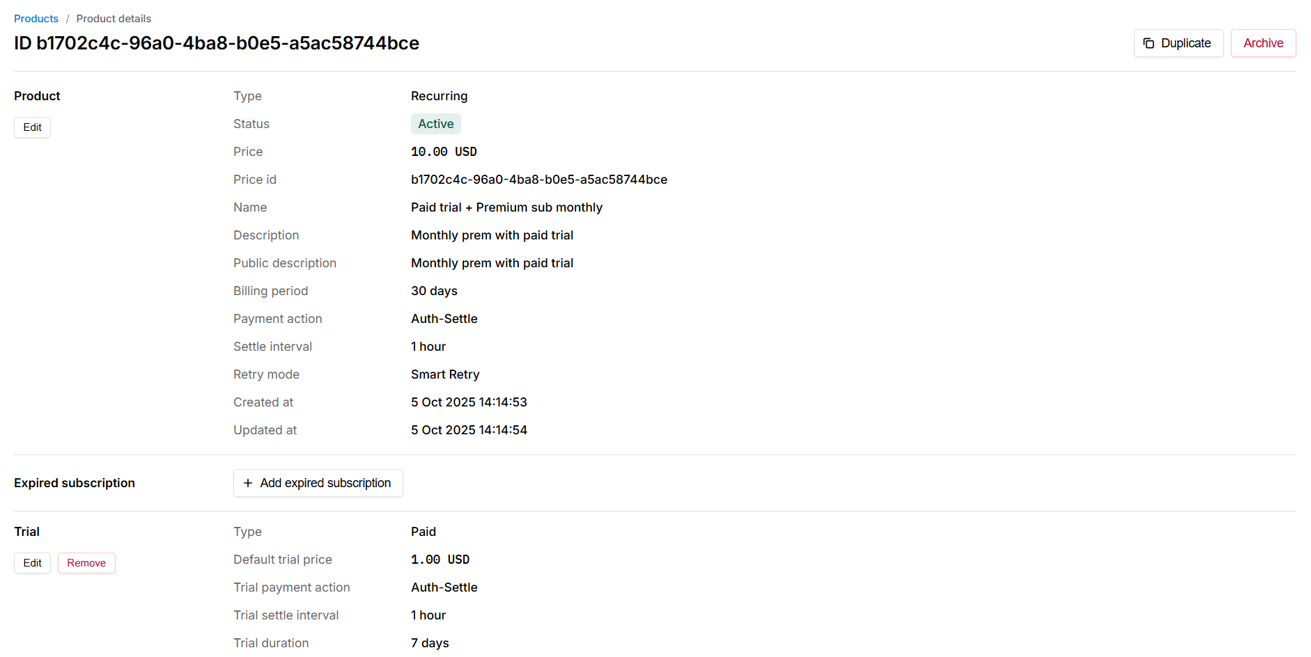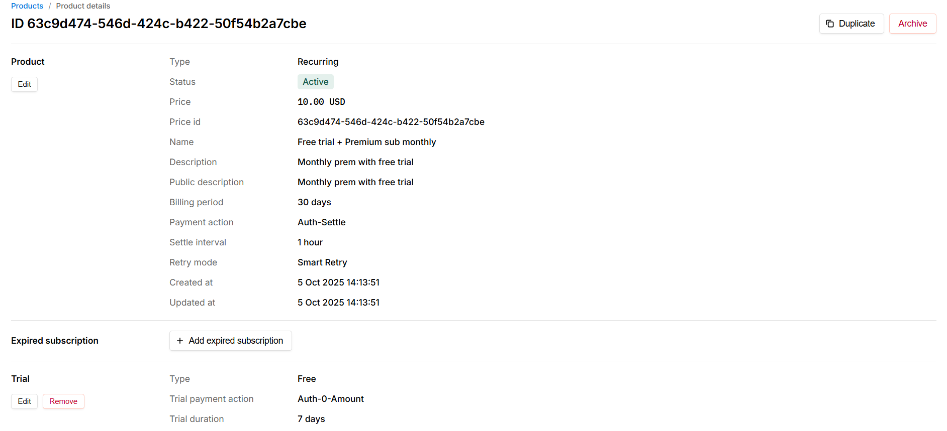 - Select Paid trial -> Subscription in the Product type.