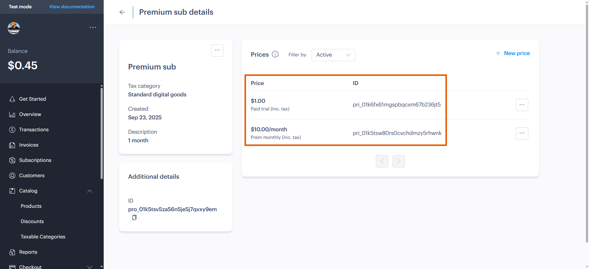 - Subscription product created in Stripe.