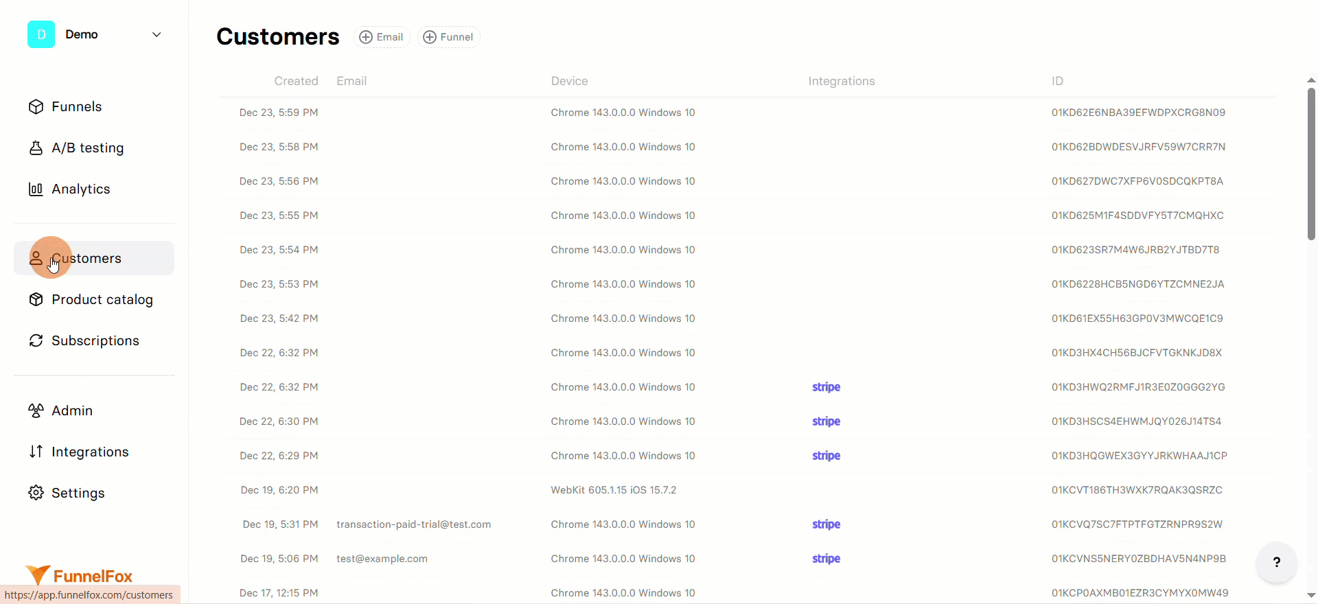 Verify the events FunnelFox sent to your analytics platform. The steps below show Amplitude and Mixpanel examples.