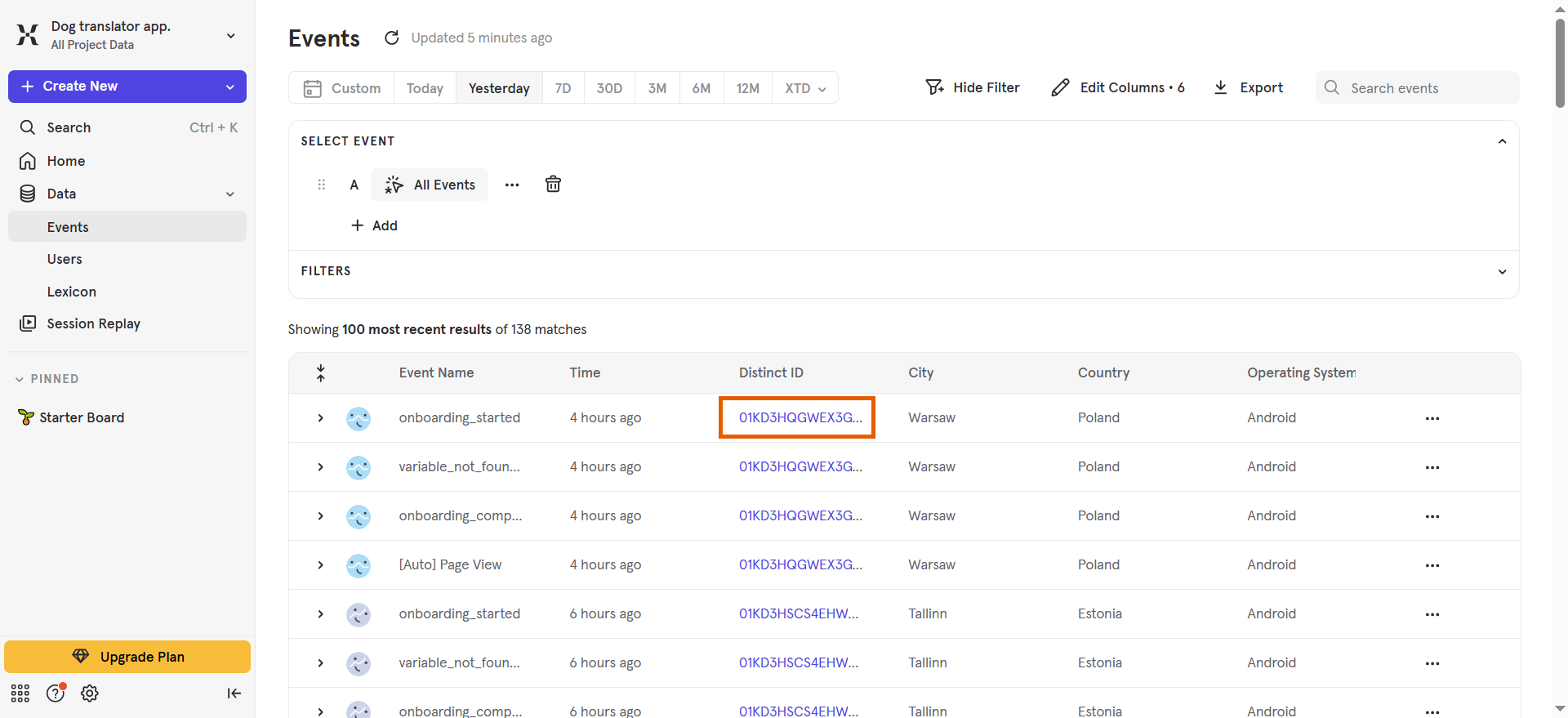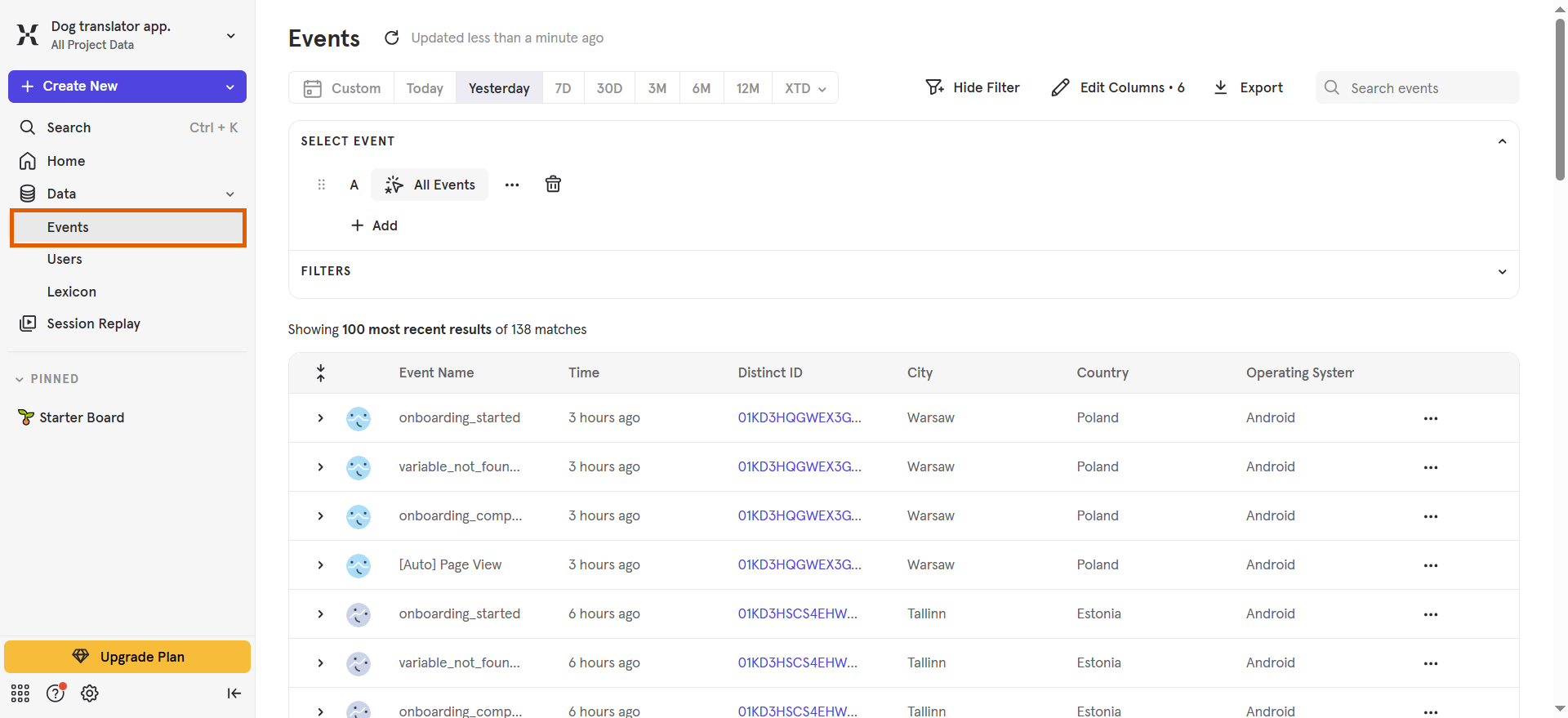 - Go to Live events in your Amplitude dashboard to see events from your test.