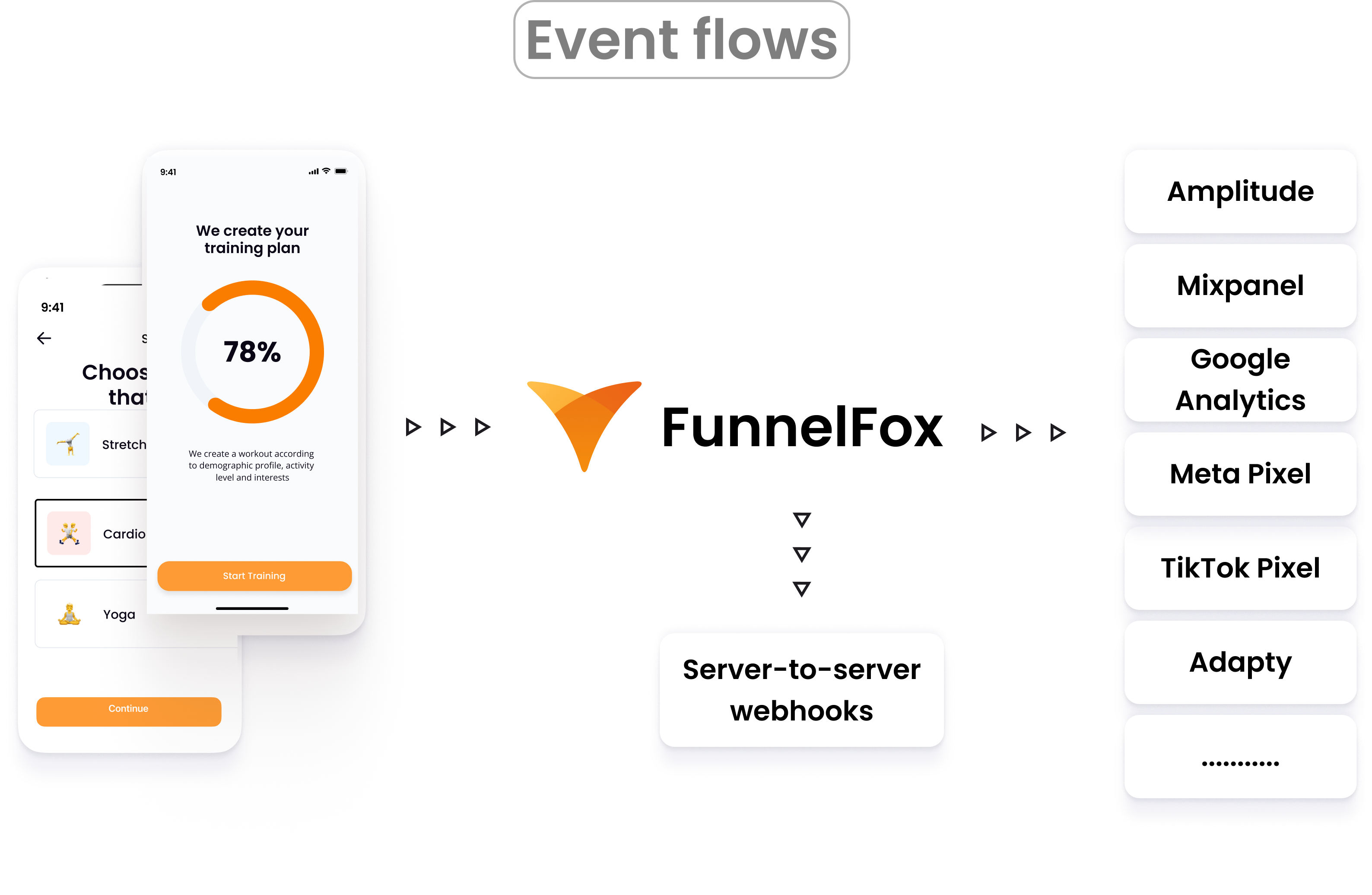 - Server-to-server webhooks: FunnelFox can POST each event to your backend in near real time. Learn about FunnelFox webhooks.