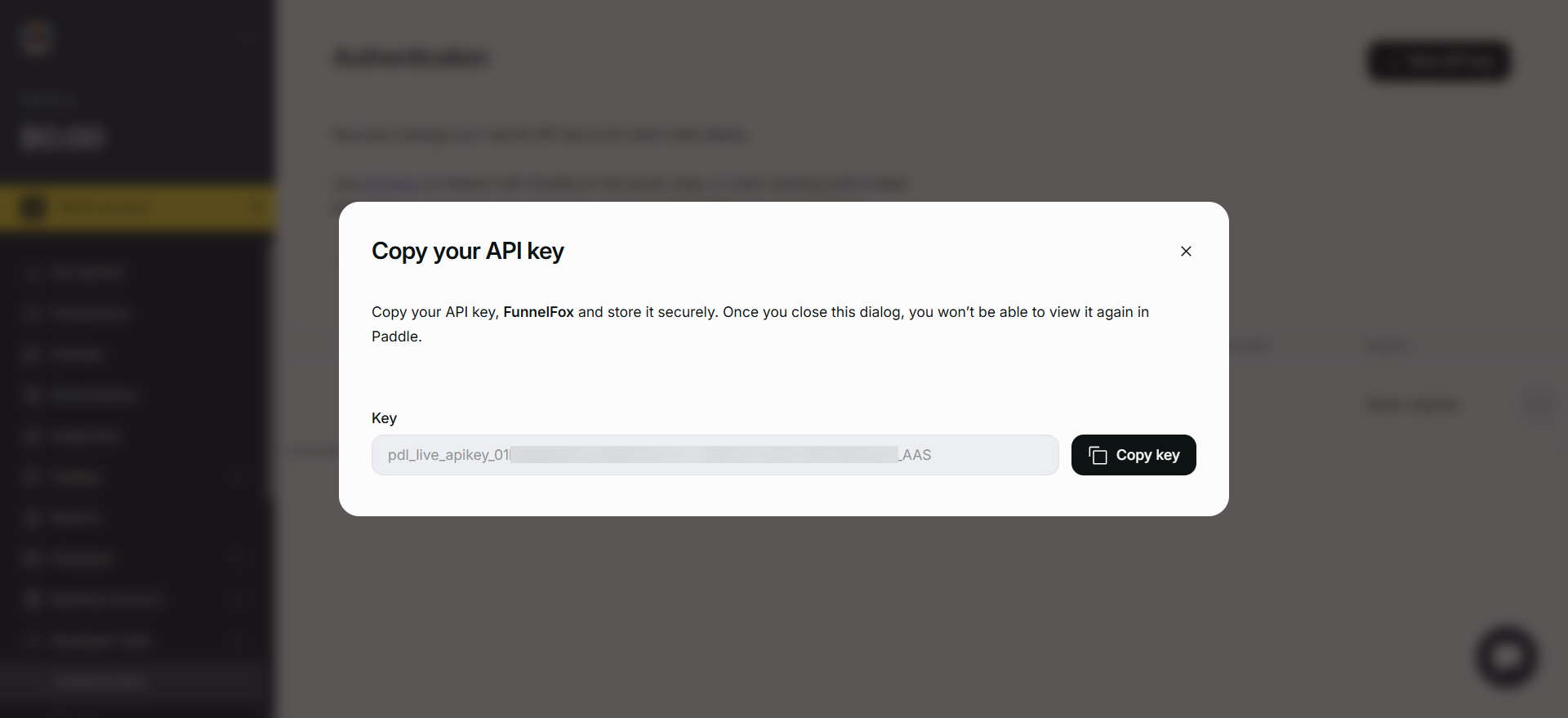 Don’t close your Paddle integration settings in FunnelFox and proceed with the next section.