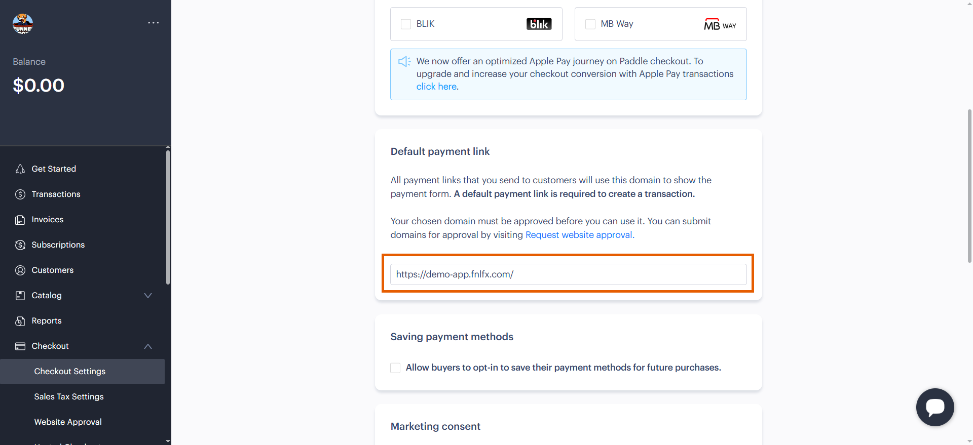 as the domain in Paddle.- Create a Paddle Sandbox account at https://sandbox-vendors.paddle.com/signup.