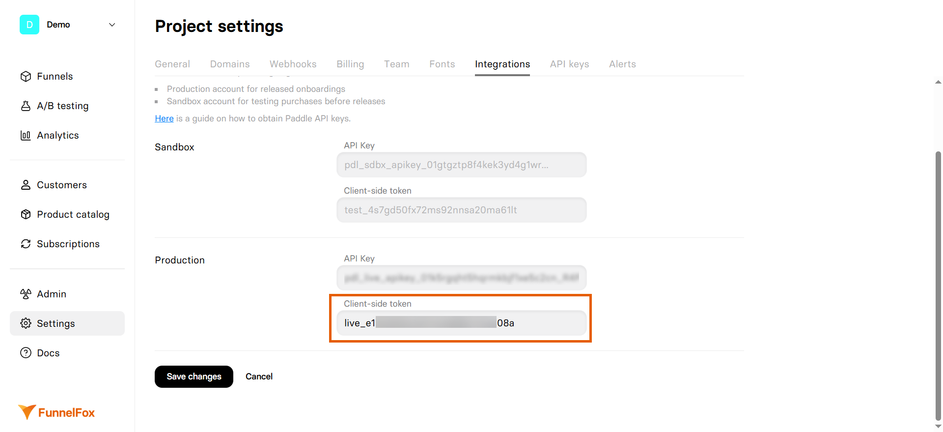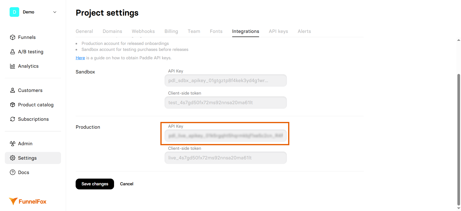 - Go back to Settings > Integrations > Paddle in FunnelFox.