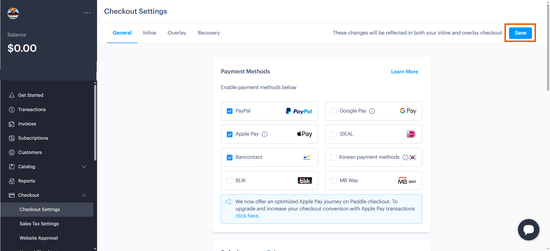 Test your Paddle integration with simulated payments before going live.- Configure the test in your Checkout element’s Sandbox section.