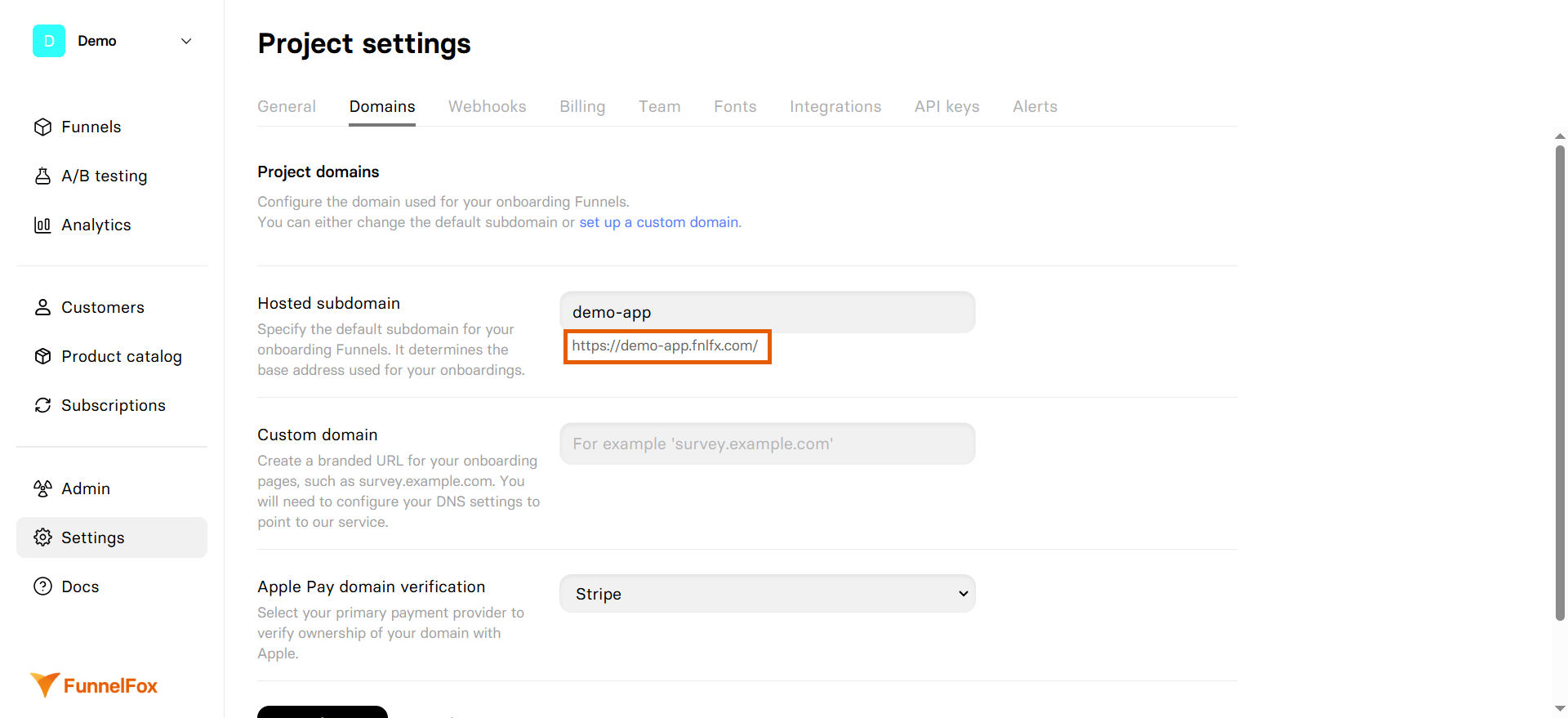 To simplify Paddle account verification, use your FunnelFox project subdomain
