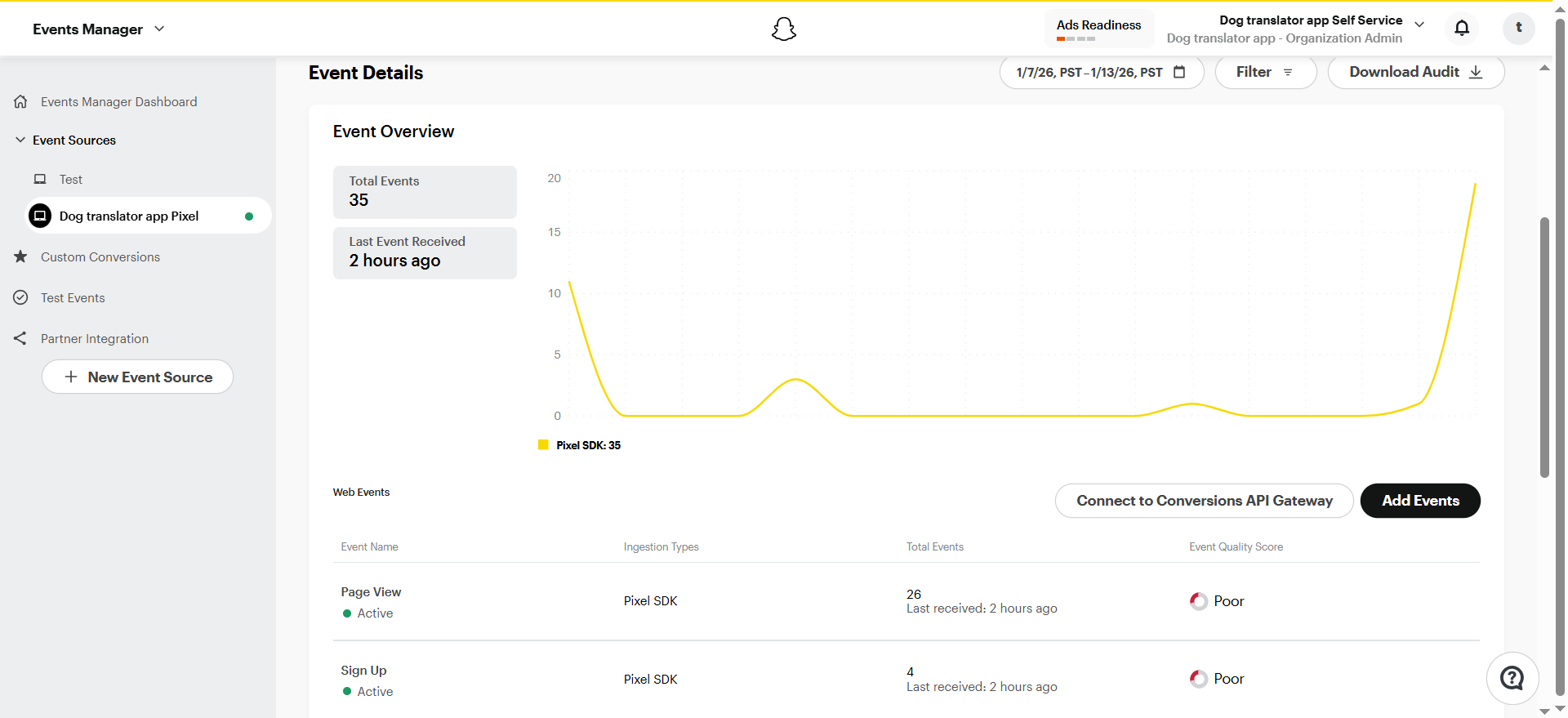 Snap Pixel is a JavaScript snippet that loads on your funnel pages and tracks visitor actions. Events are sent from the visitor’s browser directly to Snapchat, where they appear in Events Manager for attribution and reporting. FunnelFox sends events using the client-side Snap Pixel. Snapchat Conversions API is not currently supported. Learn more about Snap Pixel.Tracked events